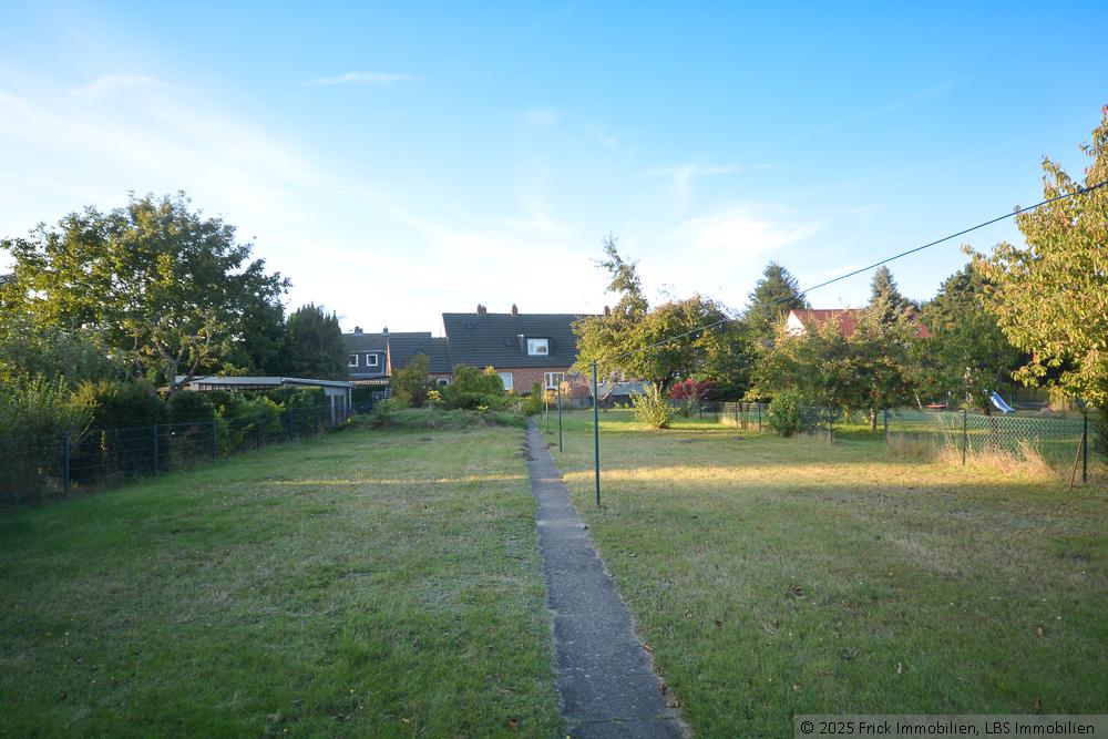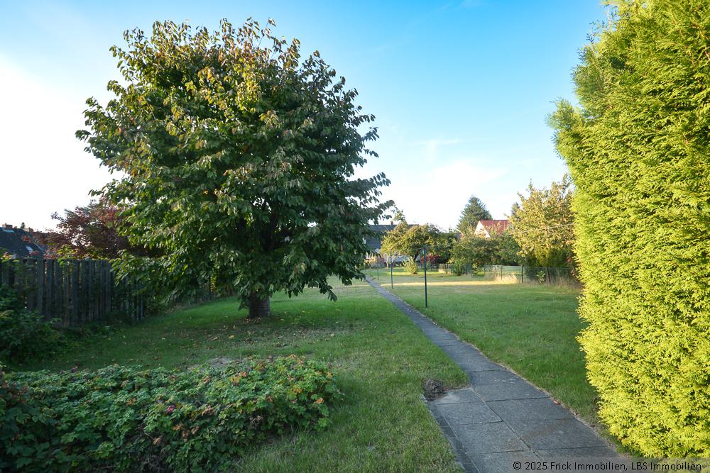 Das große Grundstück ist rechteckig geschnitten, eben und bietet reichlich Platz für einen Nutzgarten etc.