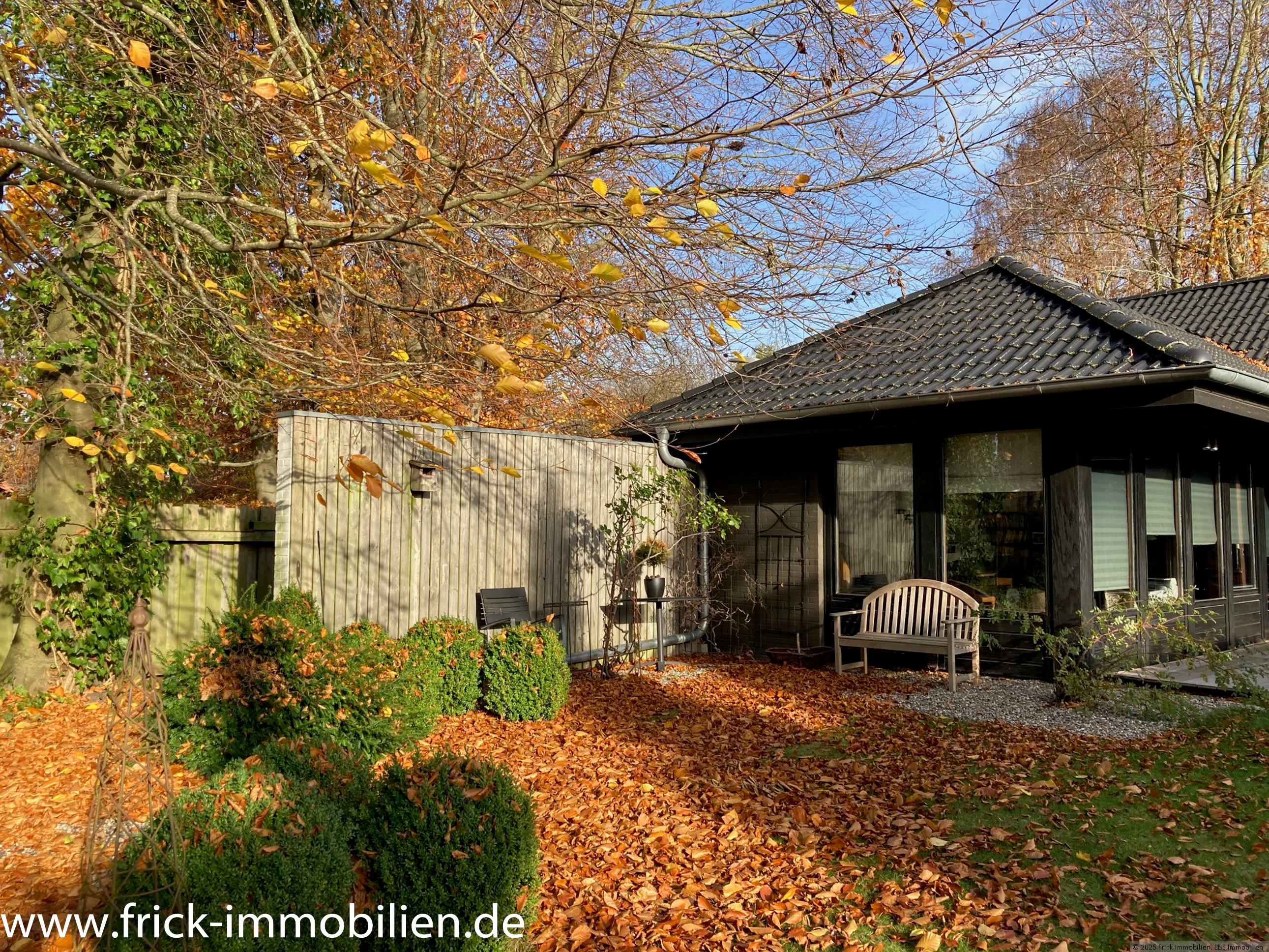 Das hier von uns im Rahmen eines qualifizierten Makler-Alleinauftrages angebotene Grundstück ist mit einem teilunterkellerten, dänischen Walmdachwinkelbungalow (Tjaereborg Typenhaus) bebaut. Das Dach wurde 2017 erneuert. Zusätzlich zu den 113 m² Wohnfläche im EG sind auch noch im KG 2 Räume wohnlich ausgebaut. Das Haus verfügt über das gewissen "Etwas" und ist sehr großzügig aufgeteilt. Es ist für eine kleinere Familie ebenso geeignet, wie auch als Seniorenwohnsitz in gefragter Lage.