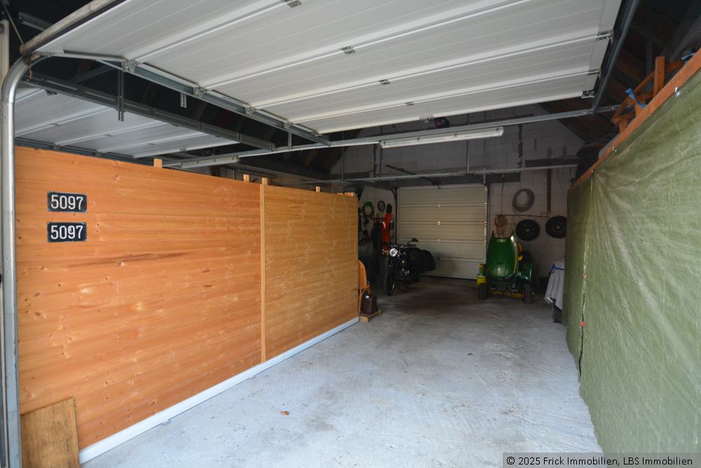 Die große Garage (9,30mx7,30m / ca. 67,89 m²) verfügt über 2 elektrische Sektionaltore auf der Vorderseite und ein zentrales Tor auf der Rückseite und wurde erst nachträglich im Jahr 2014 gebaut. Die Garage bietet Platz für 2 PKW´s und weitere Abstellfläche für Fahrräder / Motorräder o.ä.