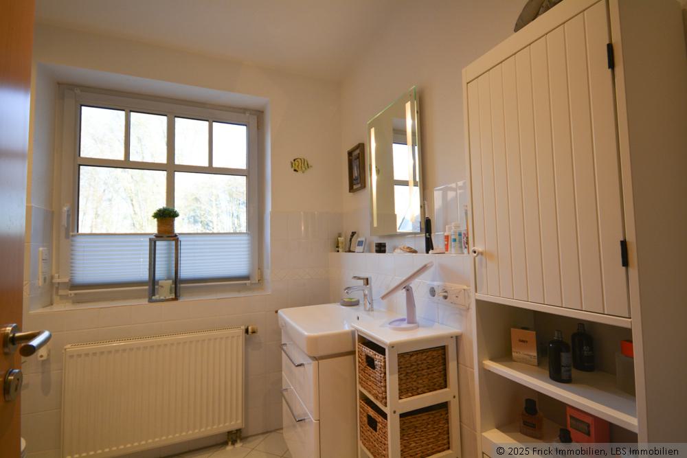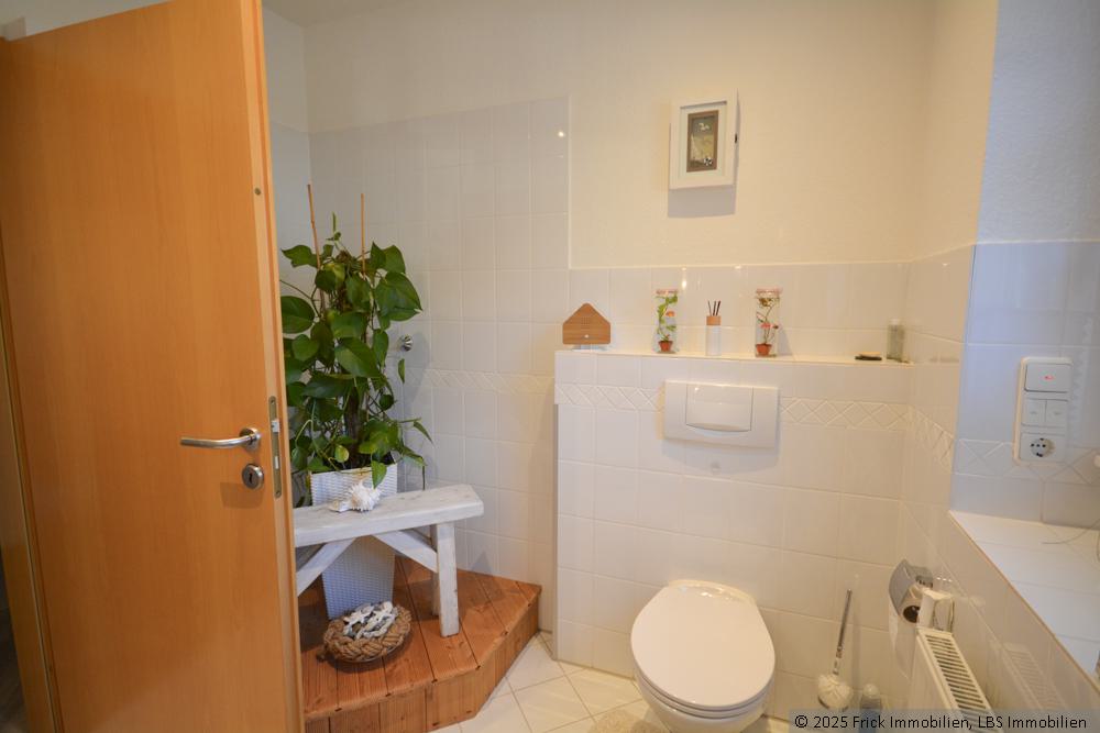Das Gäste-WC verfügt über WC, Handwaschbecken und ein Außenfenster. Der Einbau einer Dusche ist möglich.